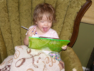 Autumn is still sick--runny nose, coughing, moody, etc. but she's certainly got her energy back. Far too much for us to keep up with her. The house is just falling apart around us as she goes through the kitchen cupboards, the laundry hamper, the shoes in the bottom of the closet, and the trashcan and pulls everything out and all over the house. But I'm too tired to do anything about it.